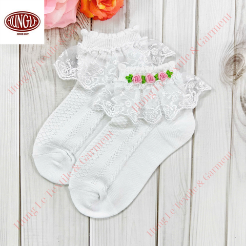 花の刺Embroideryが施された愛らしい手編みのベビーソックス