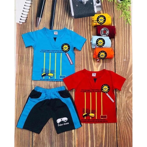여름 봄과 가을 새로운 소년 정장 짧은 소매 바지 세트 소년 아기 옷 세트