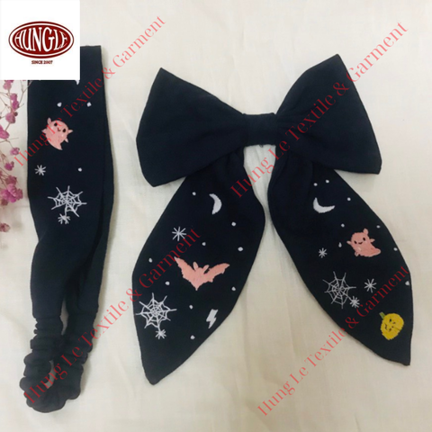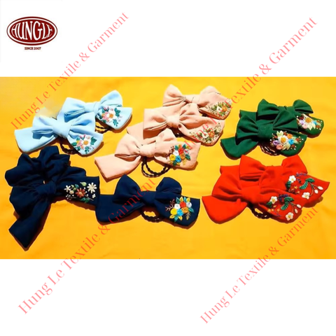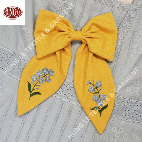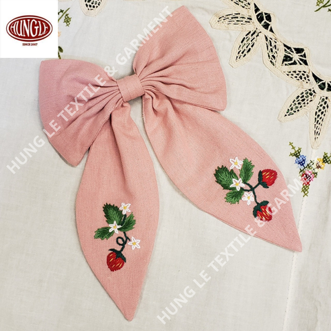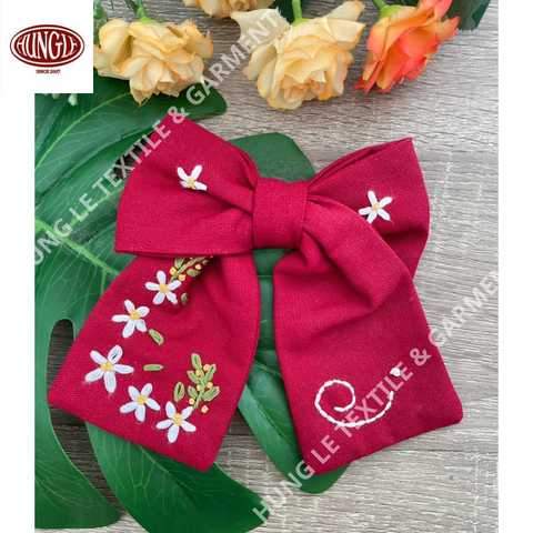 โบว์ผูกผมทำจากผ้าฝ้ายมีสไตล์ปักด้วยมือสำหรับผู้หญิง