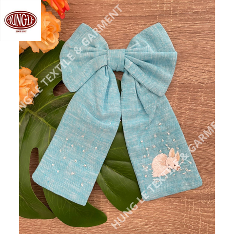 ปิ่นปักผมรูปโบว์ผ้าคอตตอนปรับแต่งได้สไตล์ปักด้วยมือสำหรับทำผู้หญิง